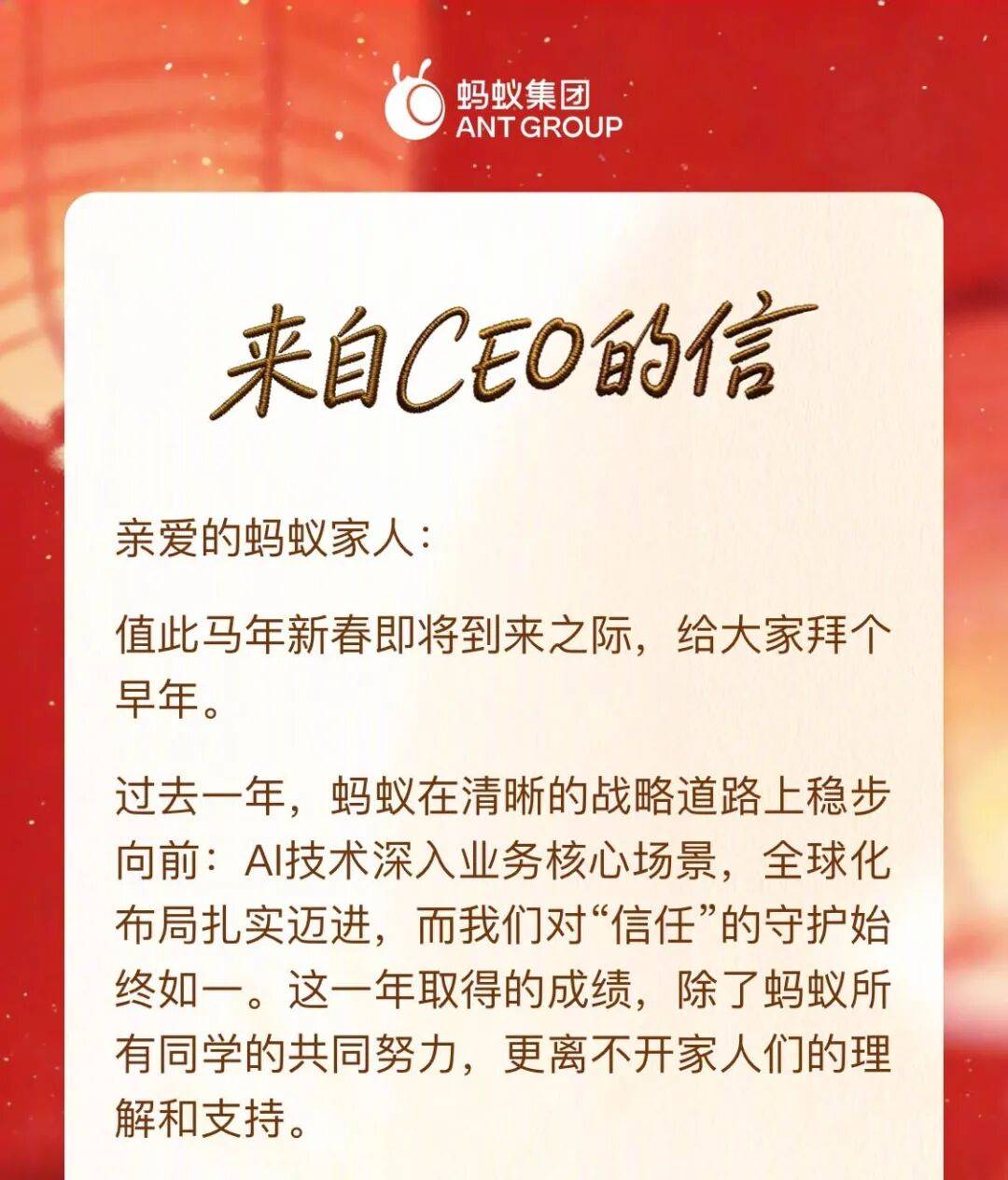 据新浪科技报道,蚂蚁集团 CEO 韩歆毅近日向全体员工发布内部信,总结过去一年在 AI 应用、支付创新与全球化布局上的进展,并披露多项关键业务数据。
